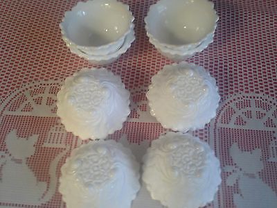 Vintage 8 Indiana Glass Milk Glass Wild Rose Dessert Bowls
