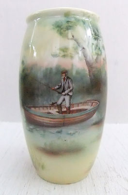 OLD VINTAGE MAN IN BOAT FISHING ROYAL BAYREUTH BAVARIA VASE