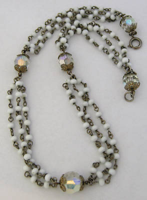 Vintage Milk Glass & Faceted Crystal Bead Necklace