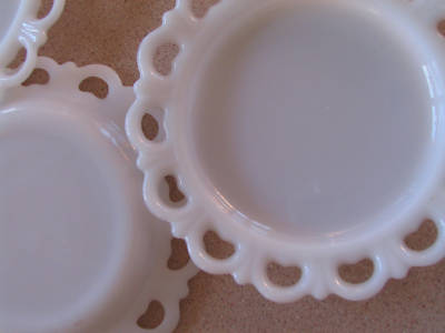 Vintage dishes 4 MILK Glass white Plates scalloped edge