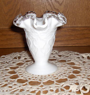Fenton Milk Glass Spanish Lace Silvercrest 4" Vase Exc
