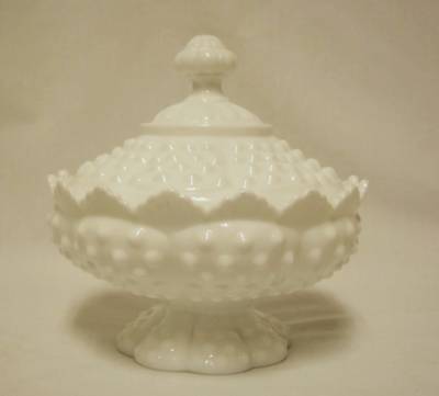 Fenton Hobnail Milk Glass Covered CANDY DISH Mint