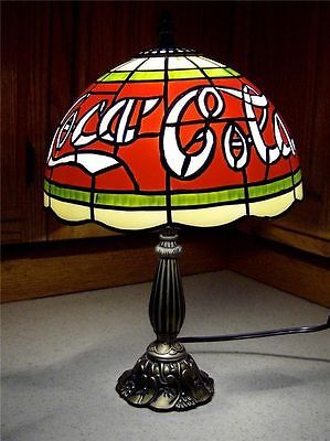 Title (ebay affiliate link): Coka Cola Classic Coke Stained Glass Style Accent Lamp Tiffany Bronze Light 2000