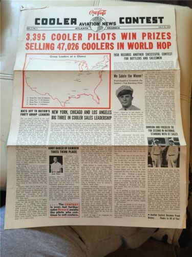 Title (ebay affiliate link): 1938 Coca Cola Cooler Sales Aviation Newspaper Cooler Contest