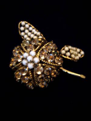 Vintage Rhinestone and milk glass Brooch