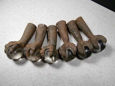 Title (ebay affiliate link): Lot Of 6 Antique Cast Iron Eagle Claw & Glass Ball Parlor Table Feet