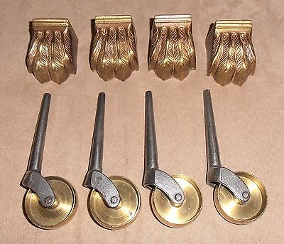 4 Antique BRASS Furniture Table Claw Paw Foot Feet Caster Wheel Cap Duncan Phyfe