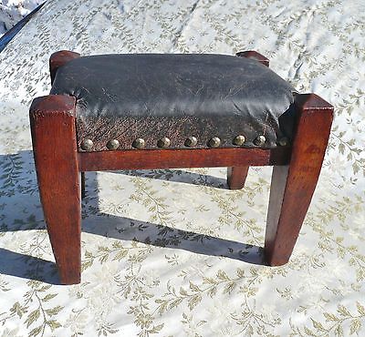 Antique Original Tiger Oak / Leather Mission Arts Crafts Foot Stool Ottoman