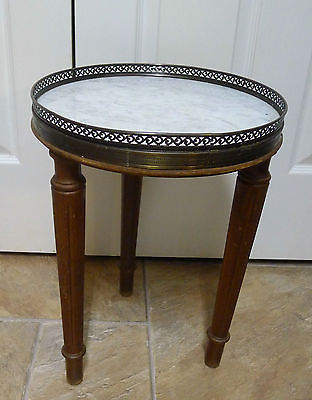 Vtg Marble Wood Wooden Brass Round Table Side Telephone Plant 3 Legs Mid Century