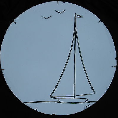 NICE Vintage Art Deco 1930's Round 14" Imprinted Sailing Yacht Wall Mirror