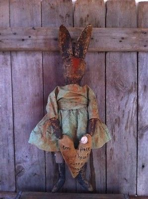 Title (ebay affiliate link): Primitive Black Folk ARt Easter Bunny Rabbit Doll with embroidered heart pillow
