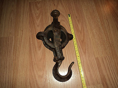 Antique Vintage Hay Barn metal Pulley with hook Farm steampunk