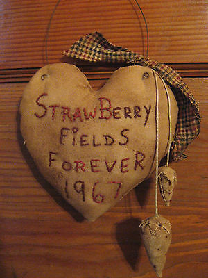 Title (ebay affiliate link): Primitive Valentine Heart Muslin, with Strawberries Grungy Wall hanger