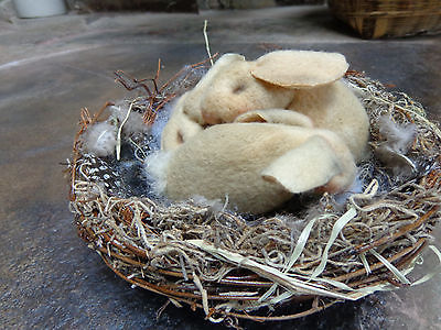 Baby Bunnies in a nest~ Bowl fillers~Easter~everyday Primitive soft sculpted