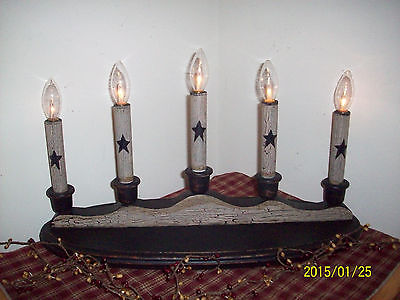 Title (ebay affiliate link): PRIMITIVE CRACKLE BLACK STAR CANDLE HOLDER WITH 5 CANDLES COUNTRY FARMHOUSE