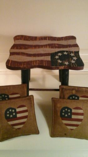 Title (ebay affiliate link): Grungy Primitive Valentine Heart Americana Pillows & Americana Stool