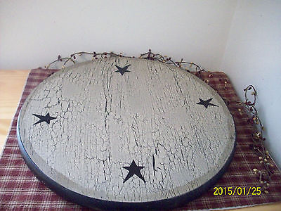 PRIMITIVE CRACKLE BLACK STAR WOOD LAZY SUSAN COUNTRY FARMHOUSE DECOR