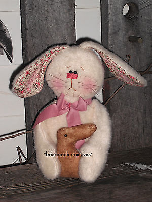 Primitive Easter Rabbit Stump Doll w Grungy Bunny Ornie Shelf Sitter Tuck