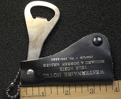 Title (ebay affiliate link): Vintage Key Chain Beer Bottle Opener in Leather - WESTERNAIRE HOTEL - KYFXFBZ