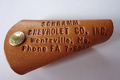Vintage 1950s Schramm Chevrolet Leather Key Case Chevy Keychain Wentzville Mo