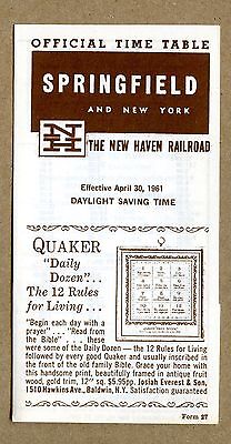 NEW HAVEN NYNH&H NH FORM 27 Springfield to NY 4-30-1961 TDI PUBLIC TIMETABLE