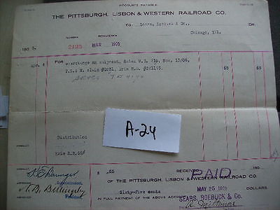 Title (ebay affiliate link): PITTSBURGH LISBON & WESTERN RAILROAD 1905 VOUCHER WHEELING & LAKE ERIE RR A-24