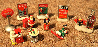 lot of 10 COCA COLA Town Square Village Signs Figurines polar bear santa penguin