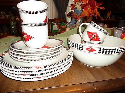 COCA COLA DISHES SET OF 4 PLATES, CUPS AND SAUCERS WITH SERVING BOWL