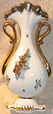 ANTIQUE VINTAGE GRACEFUL ORNATE GOLD GILDED PORCELAIN VASE w/ROSES HALLMARKED
