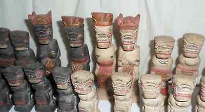 Antique Wooden Hand Carved Chess Pieces Set Hindu Monsters Gods Indonesia Java