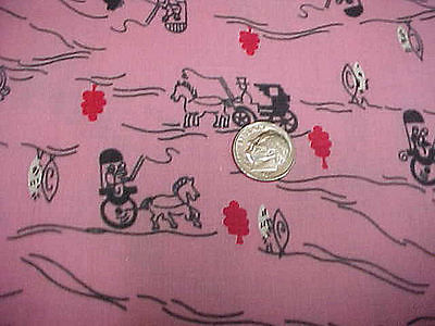Vintage Antique Cotton Quilt Doll Fabric Print 1920s Novelty Remnant PINK Horses