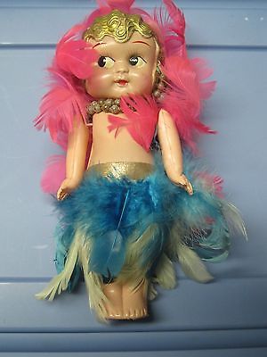 antique TT Kewpie doll made in Japan: MADE OF CELLULOID PLASTIC w FEATHERS&BEADS