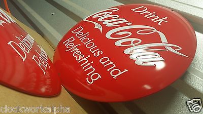 Embossed COCA-COLA Button SIGN Soda Can Machine Vintage Style Bottle COKE Mobil