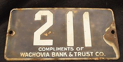 Title (ebay affiliate link): Vintage Porcelain Number Sign Compliments of Wachovia Bank & Trust Co.