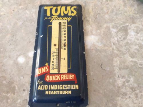 Vintage Old TUMS FOR THE TUMMY Quick Relief Advertising Metal Tin Thermometer !!