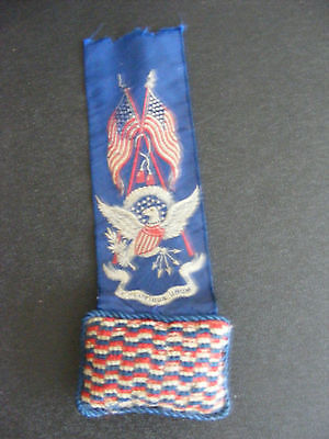 Antique EAGLE SEWING BIRD PIN CUSHION Blue Silk Ribbon E Pluribus Unum