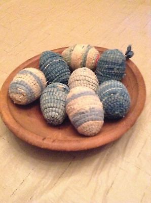 Set 8 primitive early rag rug covered eggs indigo blues bowl fillers blue