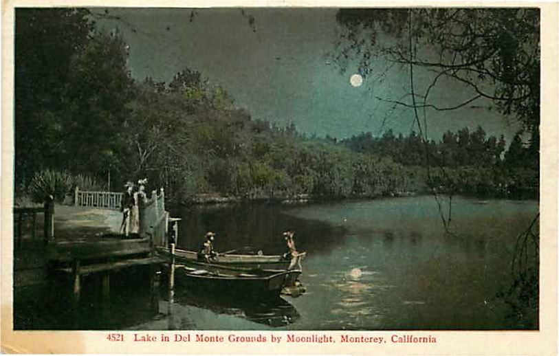Title (ebay affiliate link): Postcard Del Monte Hotel Lake in Moonlight, Monterey, California - circa 1908