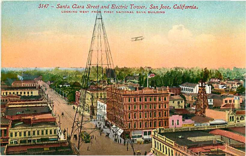 Title (ebay affiliate link): Postcard Street Scene & Electric Tower, San Jose, California - circa 1910