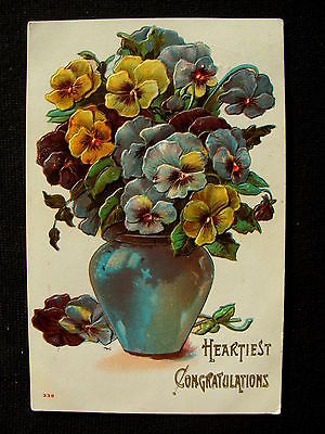 Title (ebay affiliate link): Beautifully Embossed Blue Vase of Colorful Pansies Greeting Postcard