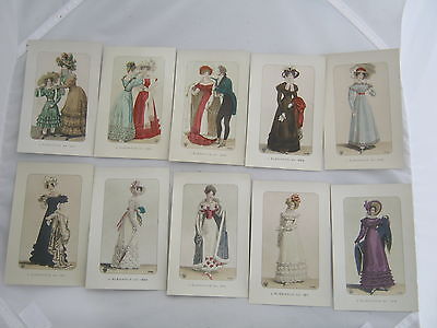 10 VINTAGE POSTCARDS, L'ELEGANCE EN 1817-1826 CROISSANT, PARIS, FRENCH FASHION