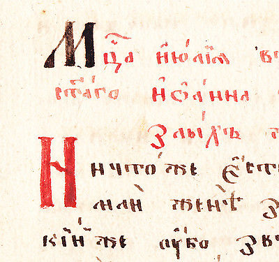 Title (ebay affiliate link): 3 Leaves Russian Orthodox Old Church Slavonic Red Manuscript Bible with Red Ink