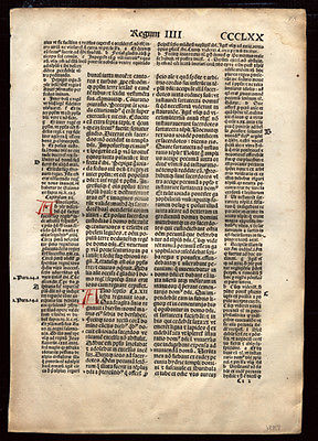 1497 Incunable Latin Bible Leaf 4th Kings Red Numerous Hand Colored Letters