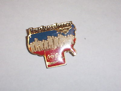 Vintage Collectible Gold Tone ENAMEL COCA COLA Hands Across America 1986 Tac pin