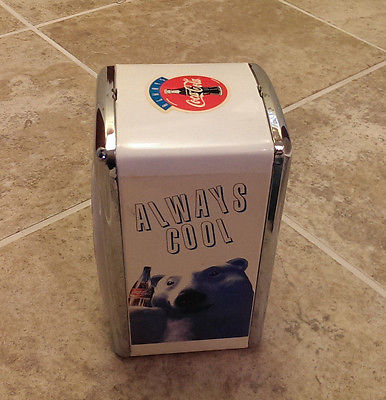 Title (ebay affiliate link): 1994 Coca-Cola Polar Bear Metal Napkin Holder / Dispenser