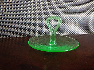 Title (ebay affiliate link): Depression green glass small serving dish rotating 5.25 inches diameter