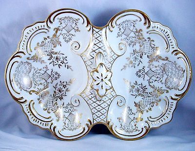 MINT Vintage Voigt Porcelain Divided Dish German Gold Filigree Center Handle N/R
