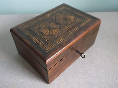 Vintage / Antique Inlaid Wood Storage or Jewelry Box w/ Key