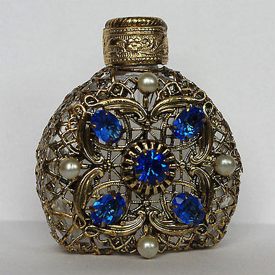 Vintage Czech handmade BLUE rhinestones glass perfume bottle