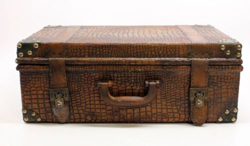 Title (ebay affiliate link): Old Antique Wooden Chest Alligator Skin Cover Velvet Interior With Handle